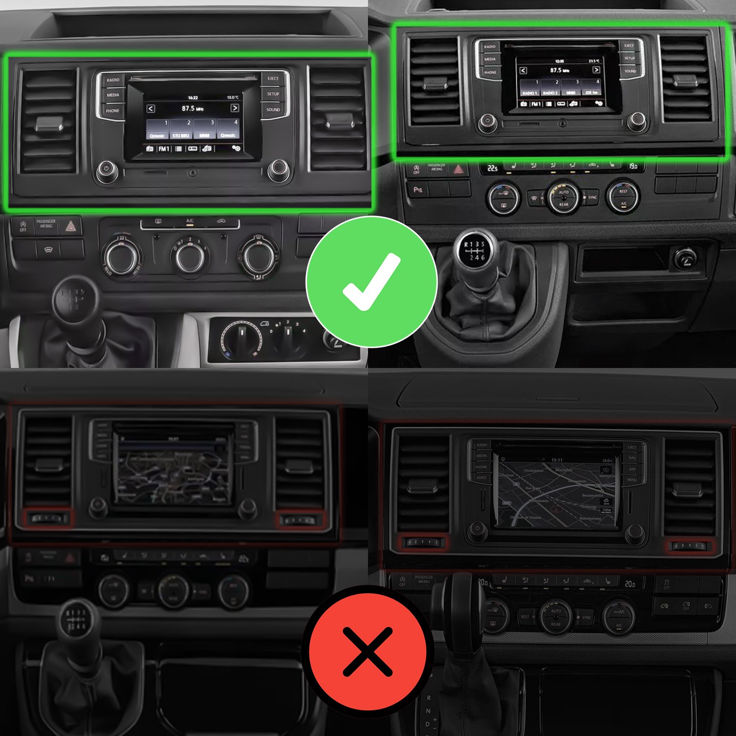 Bei der Auswahl des Artikels sind das Bild zur Kompatibilität zu beachten. Sie sollten darauf achten, dass das Aussehen des Radios oder des Einbaurahmens mit Ihrem Fahrzeug übereinstimmt, denn nur so können Sie sicher sein, dass das Radio oder der Einbaurahmen zu Ihrem Fahrzeug passt.