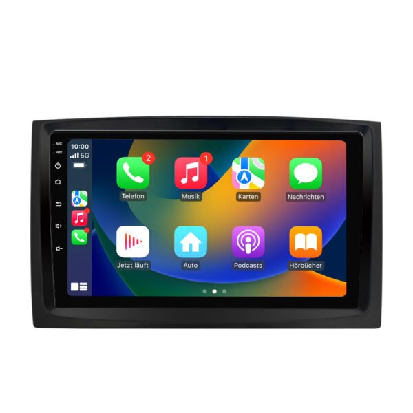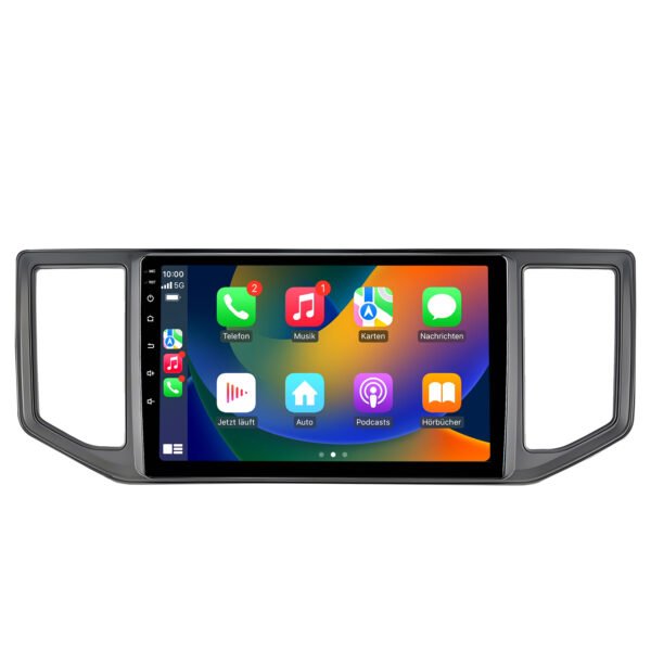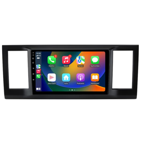 Android Autoradio für VW T5 Transporter Multivan mit Wireless CarPlay, Bluetooth 5.0, GPS Navigation, DAB+, Rückfahrkamera- & Lenkradtasten-Unterstützung.